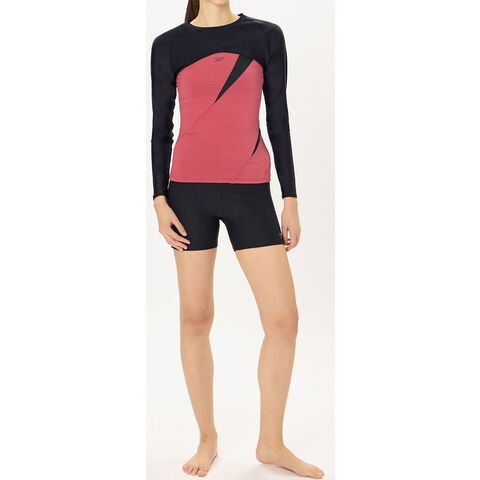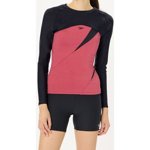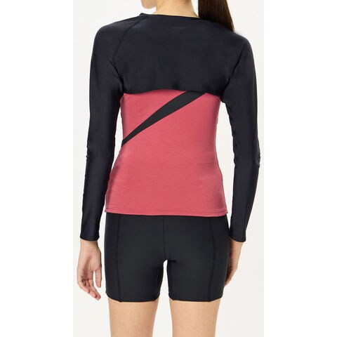 2way仕様のレディースロングスリーブです.競泳モデルと同様の[FLEX Σ χ(フレックス・シグマ・カイ)]素材を使用.ペットボトルを再利用した環境配慮型素材です.高いはっ水性により、濡れても重くならず軽量感をキープ.優れた4wayストレッチ性があらゆる動きを快適にサポートします.UVカット機能付き.汎用性の高いシンプルなデザイン.お手持ちの水着の上からも、インナーとしても手軽にご利用いただけます.肌の露出を控えたいときや、UVケアとして重宝します.コンパクトにまとまめられるので携帯にも便利です.