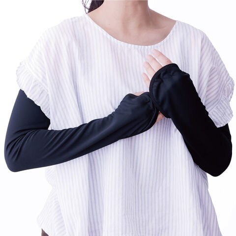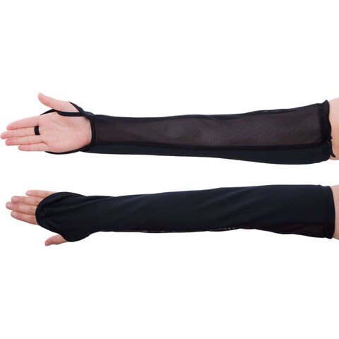 ずれ落ち防止ストッパー付.ヤケーヌと同じ生地を使用.二の腕から手の甲までしっかりガード!内側メッシュ素材で通気性バツグン!何度洗濯してもUVカット効果が持続.