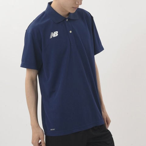 ニューバランス New Balance ポロシャツ メンズ トップス 半袖 フットボール 移動着 ワンポイントロゴ 部活 練習 トレーニング 合宿 スポーツウェア フィットネス 通学 デイリー JMTP1418 ネイビー