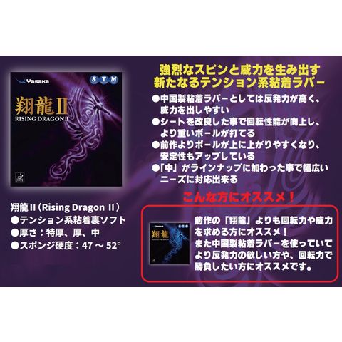 強烈なスピンと威力を生み出す新たなるテンション系粘着ラバー.よりボールを掴み強烈な回転を生み出す新設計の粘着性トップシートとハードなテンションスポンジを組みわせる事で、高い回転性能と威力を両立.粘着性ラバーの特徴である高い回転性能を生かしたサービスや台上プレーだけでなく、強打ではスピード感のあるパワードライブを放つことが出来る新たなるテンション系粘着ラバー.