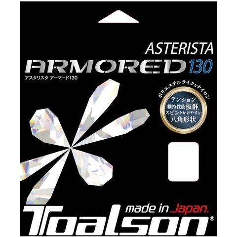 ソフトな打球感とスピードを生み出すアスタリスタコアへ耐摩耗糸をラッピングし、切断耐久性がアップしました.また、糸の滑りを良くするコーティングを施し、さらに 8 角形に成形することでスピン性能も向上し、ポリエステルライクなナイロンストリングが誕生しました.