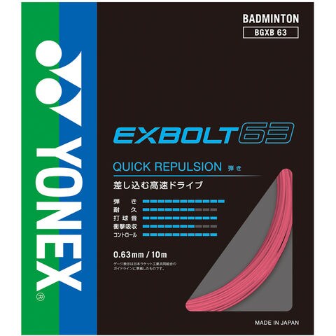 ヨネックス YONEX エクスボルト63 EXBOLT ガット ストリング 高速ドライブ 弾き 打球音 コントロール ブレーディング加工 ラケット 部活 練習 チーム 試合 大会 BGXB63 ライトピンク
