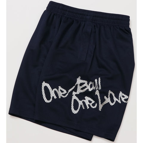 環境に配慮されたリサイクルポリエステル100で、光沢のある吸汗速乾素材を使用したジュニアショーツです.トレンドのショート丈(150cm 総丈45cm)で、両脇にポケット付き.右前裾にはCロゴを刺繍し、左サイドには[One Ball One Love(ワンボール ワンラブ)]のラバープリントを入れています.同じグラフィックを使用したショートスリーブTシャツ(CK-ZB318)も展開しているので、セットアップでの着用もオススメです.