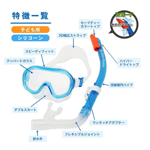 リーフツアラー Reef Tourer シリコーン製 マスク&弁付きWガードシュノーケル 子ども用2点セット RC0210 クリアピンク