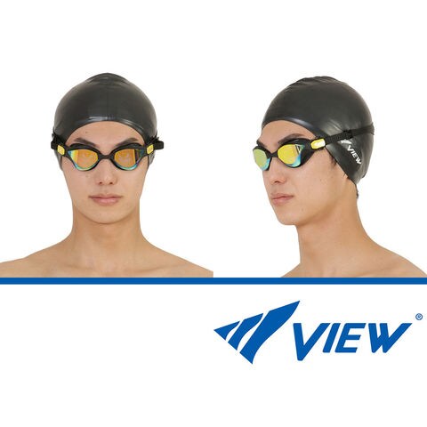 ビュー VIEW DELFINA SWIPE トライアスロン レーシング クッション付 スイミングゴーグル ミラーモデル メンズ レディース ダイビングマスク くもり止め V2000SAM クリアブラックORG