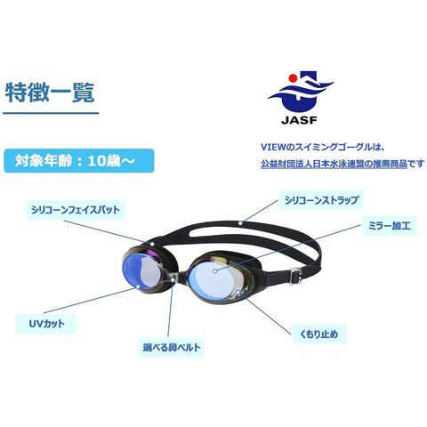 ビュー VIEW フィットネス スイミングゴーグル ミラーモデル メンズ レディース 水泳 ゴーグル 一般 プール 海水浴 川遊び UVカット シリコーン素材 V610MR ラベンダーピンク