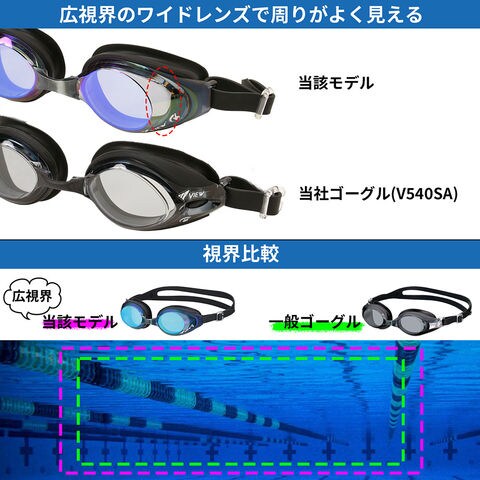 ビュー VIEW フィットネス スイミングゴーグル 大人用 スワイプ アンチフォグ SWIPE 水中メガネ UVカット くもり止め ミラータイプ 選べる鼻ベルト シリコーン仕様 V630SAM