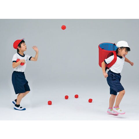動き回るカゴを目がけて玉入れ競争.動会だけでなくレクリエーションゲームとしても活躍します.