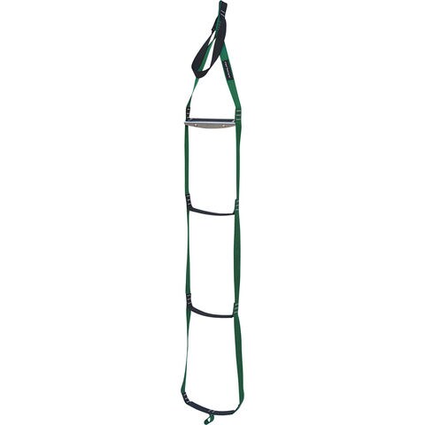 4段のナイロンンテープアブミ.各ステップには堅いプラスチック板が縫い込んであり、最上段にはアルミニウムの踏み板アルミプレートが固定されて全体の形状を保っています.ハンドループ付き.エイドクライミングだけでなく岩場で初心者を安全に登らせたり、レスキュー用具としても役立ちます.アルミプレートは取り外してもステップは安定しているから十分に使えます.
