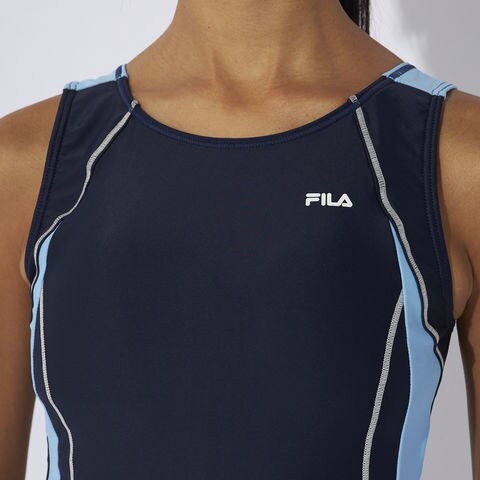 かぶりタンキニ水着.2WAY方向によく伸びる生地を使用.シンプルなセパレーツ水着.脇切り替えラインが着痩せ効果有り.カップの取替えができる挿入カップ式.15MMのゴムがアンダー内側に入ってて胸を固定しててきれいにみせてくれます.体に沿った切り替えとステッチの視覚効果でシャープな脇ライン.ボトムは伸びの良い裏地付.ウエストはスピンドルで調節可能.めくれ防止機能付.FILAロゴプリント入.※こちらの商品は返品、交換はお受けしかねますのでご了承ください.