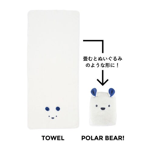触れて・干して・畳んで楽しむ見た目も可愛いアニマルタオルシリーズ.ふんわりマシュマロタッチのマイクロファイバー製.吸水量は綿の約3倍.お洗濯後もサッと乾く実用的なタオル.畳むとぬいぐるみのようなタオルに.