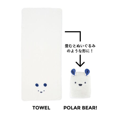 触れて・干して・畳んで楽しむ見た目も可愛いアニマルタオルシリーズ.ふんわりマシュマロタッチのマイクロファイバー製.吸水量は綿の約3倍.お洗濯後もサッと乾く実用的なタオル.畳むとぬいぐるみのようなタオルに.