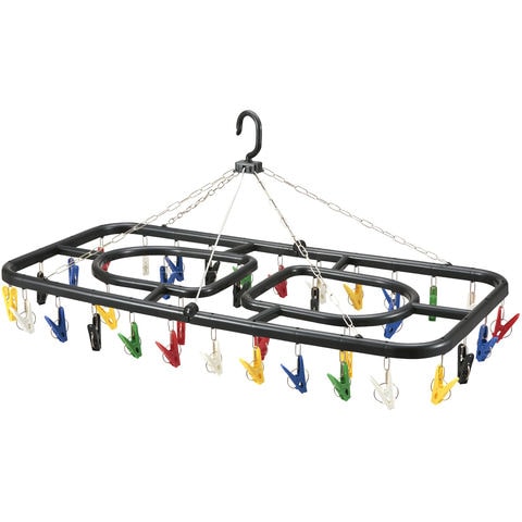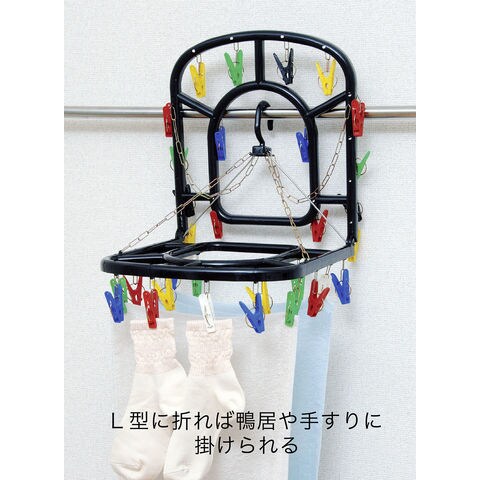 コグレ Kogure ジャンボ角ハンガー36 (カラフルBK) 洗濯物 洗濯 ハンガー 洗濯物干し フック自立 金属製チェーン 鴨居 隠し干し スチール 谷折り式 663317