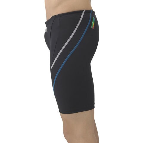 トレーニングカテゴリー[TOUGHSUITシリーズ].大会に向けて練習を重ねる頻度が高いスイマーにオススメの練習用水着.環境に配慮したリサイクルポリエステル素材[タフスキンE]を使用し塩素に強く長持ち.脇ステッチをシンプルに入れたデザイン.前当て部分に黒の裏地付き.ハーフレッグタイプ.