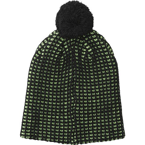 凹凸感の特徴ある編地で保温性を高めたビーニー.2色のリサイクル糸を使用.ワッフル長の編地で暖かい空気を滞留させた保温性のあるビーニー.リブがないためゴーグルをしても隙間ができにくく行きの侵入を防ぎます.