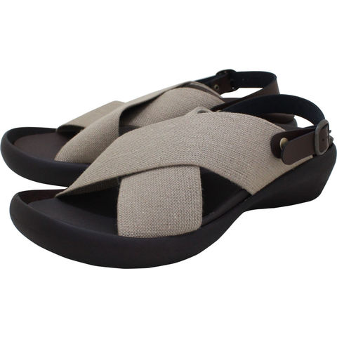 麻素材を生かしたナチュラルな風合いのクロスゴムサンダル.柔らかい肌触りでどんな足にもフィット.バックベルトは2way仕様で、使い回しのしやすい夏の定番アイテムです.
