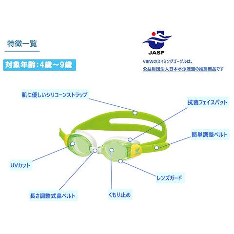 ビュー VIEW オートマッチ キッズ スイミングゴーグル (4~9歳) V730J LGY