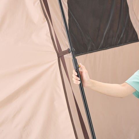 テント本体とフレームが一体式なので居住性に優れたキャビンテントが90秒で設営可能.スライド式フレームで開閉がスムーズで、スリムに収納可能.