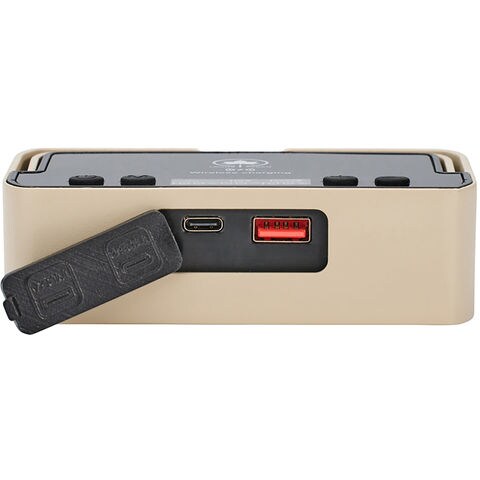 10000mAhのパワーバンク機能を兼ね備えた高輝度のランタン.スマートフォンを置くだけで充電できるワイヤレス充電機能が備わっているため、USBコード不要で外部機器への充電が可能です.スマートフォンやタブレットを同時に充電することが可能.側面にUSBポートが2口(USB TYPEC、USB-A)ございます.吊り・置きでの使用が可能となります.