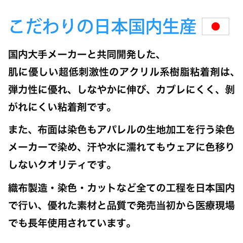 素材:ニューハレAKT(コットン97・ポリウレタン3)、糊材/アクリル系樹脂、はくり紙/紙