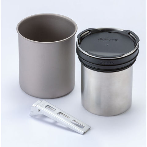 2つのマグカップ(350ml、400ml)、ジョイント、マグリッド、リフターの多機能マグセットです.2つの異なる大きさのマグを組み合わせることで、多彩な使い方を可能にしました.2つ重ねて使うと、保温・保冷機能の高いダブルウォールマグになります.それぞれ単体のマグとしても使えるので、荷物をミニマムに絞りたい時には必要なパーツのみをお選びいただける自由度を持たせました.単体で使う際は、直接ストーブで加熱することもでき、小さいサイズで飲み物を加熱した後に大きいサイズに重ねてダブルウォールにして保温するなん