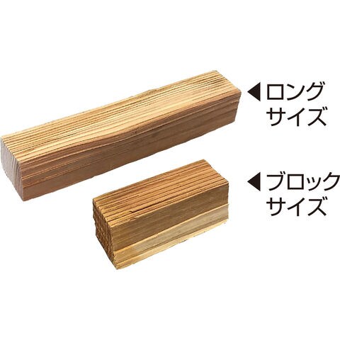 薪サイズ:ロング/約35cm、ブロック/約17cm