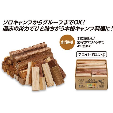 ソロキャンプからグループまでOK!遠赤の炎力でひと味違う本格キャンプ料理に.針葉樹は気に油成分が含有されているので、良く燃えます.