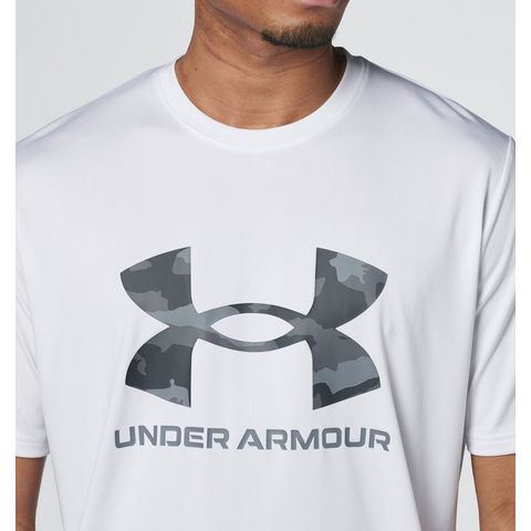 アンダーアーマー UNDER ARMOUR UA テック カモ ビッグロゴ ショートスリーブ Tシャツ メンズ 吸汗 速乾 伸縮 抗菌防臭 トップス スポーツウェア ジム トレーニング アップ 半袖 1384797 WHT