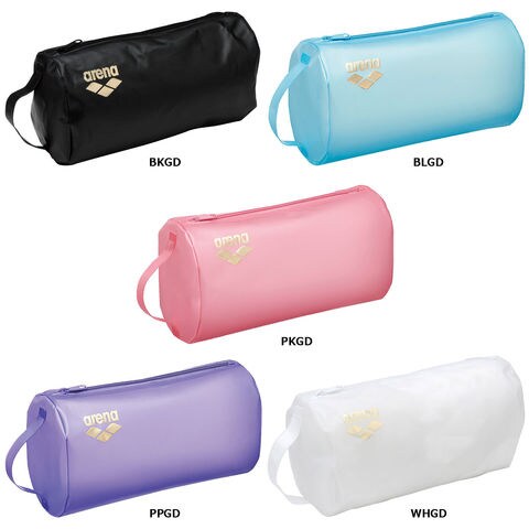 1 つ持っているとスイマーに便利なラウンド型のプルーフバッグ.防水素材を使用しているため、スイミングの後に濡れた水着やキャップ、セームタオルなどを収納するのに便利.またバッグインバッグがしやすいサイズなので、練習に行くときのスイミング用品の収納に活躍.中が見やすいブルー、ピンク、パープル、中が見えにくいホワイト、ブラックと使用用途や好みに合わせて使用可能.公式大会招集所持ち込み可.
