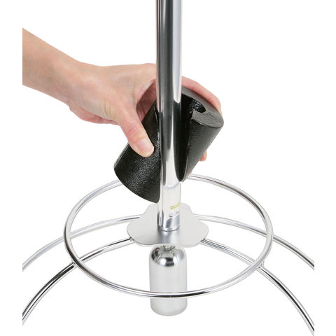 風の強い日の必需品、ホールポスト用おもりが使いやすくなってリニューアル.片手でも簡単に取り付けられ、ホールポストを傾けても落ちにくい構造を採用.