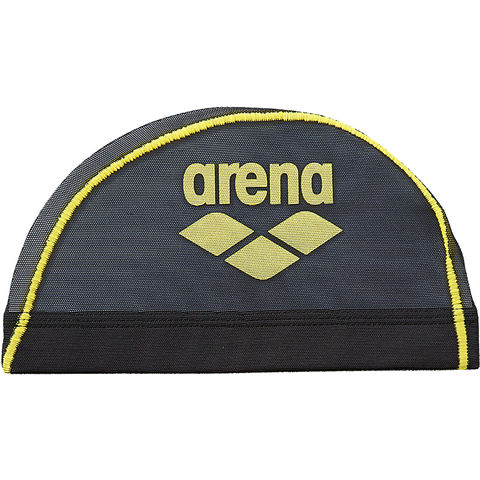 アリーナ arena メッシュキャップ メンズ レディース 水泳帽 スイムキャップ アリーナロゴ 水泳用品 競泳 プール 水泳教室 フィットネス 体育 水抜け 練習 水中ウォーキング AS5SSC41U ブラック/Fイエロー