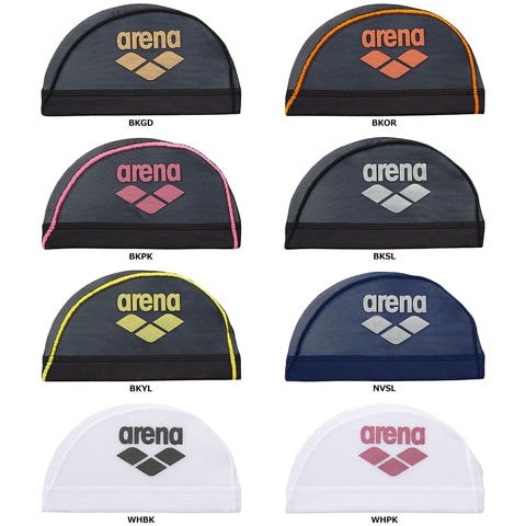 アリーナロゴを大胆にプリントした定番のメッシュ素材のスイムキャップ.水抜けが良く、ハードなトレーニングでもムレ感がなく快適に泳ぐことが可能.ハードなトレーニングするスイマーにも、ゆったり泳ぎたいスイマーにも、練習時の着用におススメ.