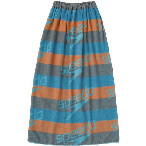 スイミングやプールシーンで大活躍する、着替えに適したスナップ付きラップタオルです.ジャガード織で表現されたSPEEDOロゴとカラフルボーダーはプールでのワクワク感を高めてくれます.グランドには環境配慮型素材、再生PET糸を使用.両面パイル部分は綿100でふっくらとした肌さわりで吸水力があります.長くお使いいただけるようプリントに比べ色が落ちにくい先染めジャガードにて柄を表現しました.