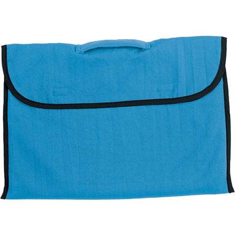 防災ずきん用カバー.普段は別売の防災ずきんを入れて (1) 椅子のせもたれに (2) 座布団として、 2WAY で使用できます.取っ手付きなので持ち運びに便利です.従来品より面ファスナーが大きくなりました.