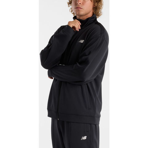 ニューバランス New Balance ニットトラックジャケット メンズ トレーニングウエア フィットネス ジム ジャケット 吸汗 速乾 ダブルニット リラックスシルエット ロゴ スポーツブランド AMJ51503 ブラック