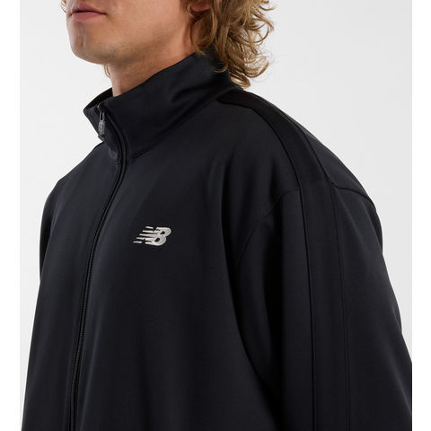 吸汗速乾性に優れたNBDRYのダブルニットを使用したトラックジャケット.少し大きめに着られるようリラックスシルエットで展開.左胸のNBロゴ刺繍と左袖のNBリニアロゴ、サイドラインテープがデザインポイント.