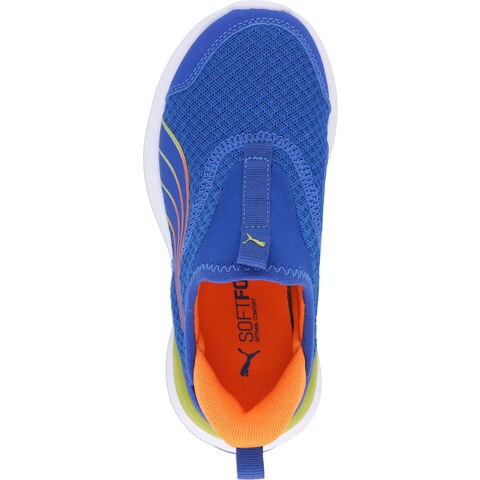 キッズスニーカーの中でもプーマらしいパフォーマンスニーズに特化してデザインを投入した一足.4歳から8歳のお子様におすすめのサイズ.プーマの新しいSLIPTECHテクノロジーにより、手を使わずにシューズを脱ぎ履きでき、ユニークなステップインスタイルを演出します.アッパーはスリップオン仕様で、耐久性と足運びをサポートするトラクションが特徴.ミッドソールには、ProFoamと耐久性のあるラバーポッドがどんな路面でもトラクションを発揮します.伸縮性のあるネオプレンとウェビングが元気に動き回るお子様の足にぴったりフィットします.