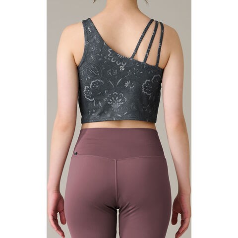 バックデザインがポイントのミドル丈トップ.少しゆとりを持たせた裾巾で、ウエストラインが目立たず着用できます.ネックラインは深すぎない V 字型.女性らしい、ゆるやかなラインで、デコルテを美しく見せてくれます.ヨガからワークアウトまで対応し、アクティブな動きにフィットするトップスとボトムスを、エスニック柄とオーキッド柄で.ソフトな肌触りが心地よい 2WAY ストレッチ素材を採用し、程よい肉厚感と締めつけすぎない伸縮性が、着用時のストレスを軽減します.