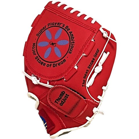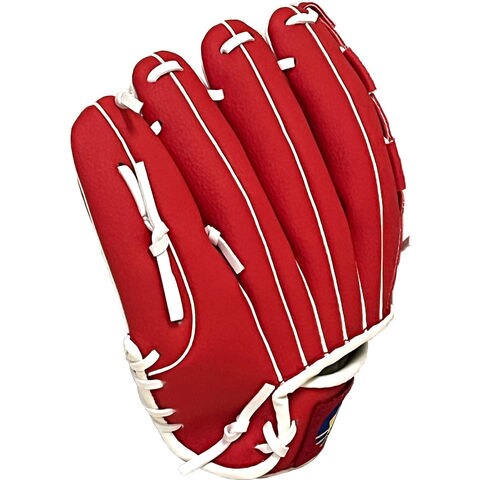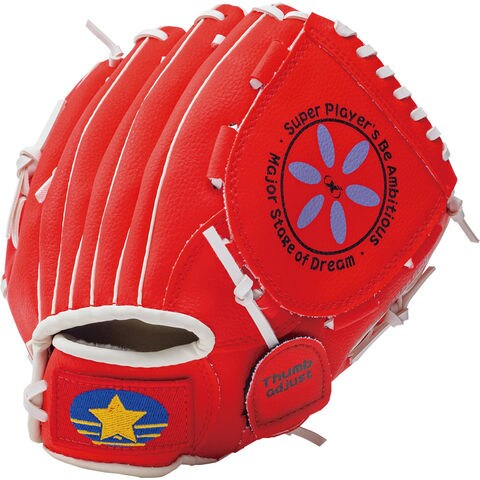 人気のレッドが個性をくすぐるキッズのためのグラブ 柔らかく手になじみやすい合成皮革グラブ 軽くて使いやすくキャッチボールにもオススメです.
