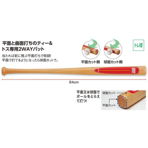 4 面特打 平面と球面打ちのティー&トス専用2 WAY バット 当たれば前に飛ぶ平面打ちで特訓!平面で打てるようになったら球面で打つトレーニングを.