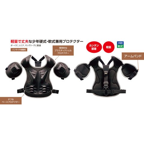 軽量で丈夫な少年硬式・軟式兼用プロテクター 軽量設計で装着も超カンタン!インサイド球審チェストプロテクターです.