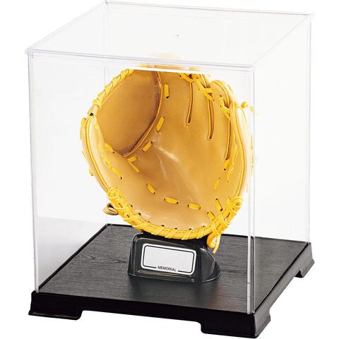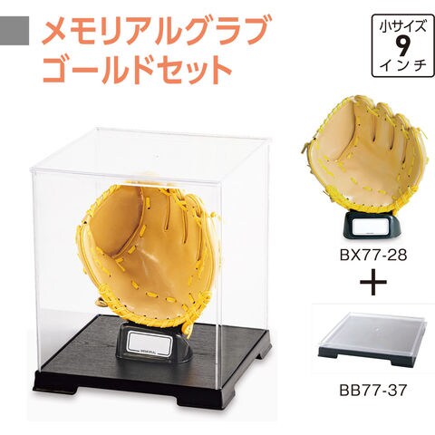 9 インチメモリアルグラブとクリアケースのセット 卒団、卒部等の思い出のプレゼントに最適です.クリアケースと大座付なので直ぐに飾る事ができます.