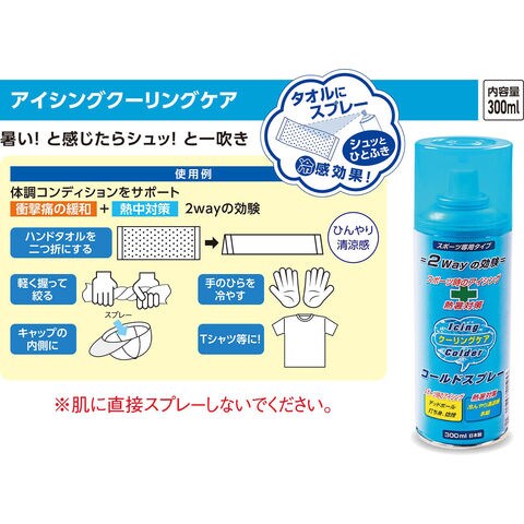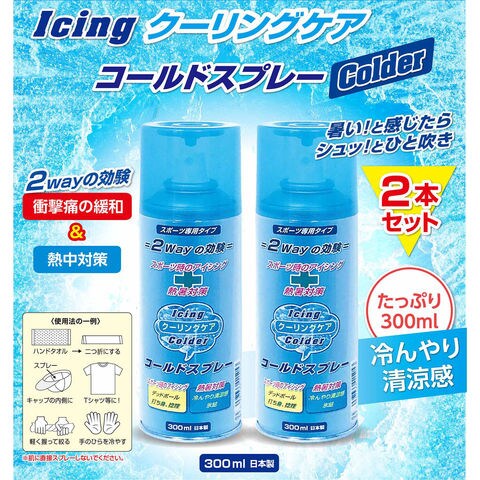 厚い!と感じたらシュッ!とひと吹きコールドスプレー 熱中対策にも活躍します.打撲箇所にスプレーしてアイシング効果!お得な 2 本セットです.