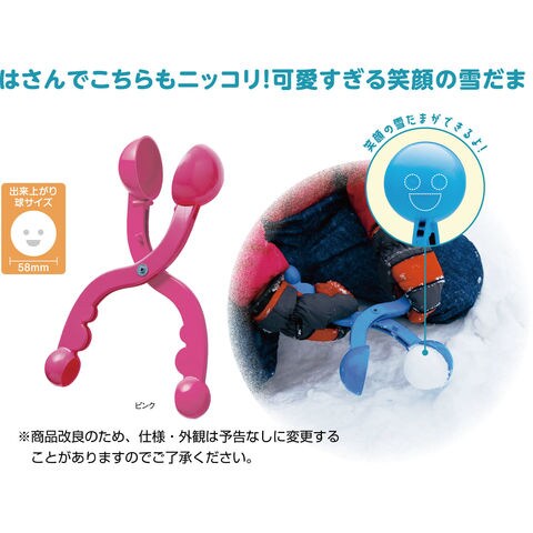 笑顔の雪玉ができる雪玉づくりマシーン.軽量なので小さなお子様でも手軽に雪玉がつくれます.出来上がりの球サイズは 58 mm.