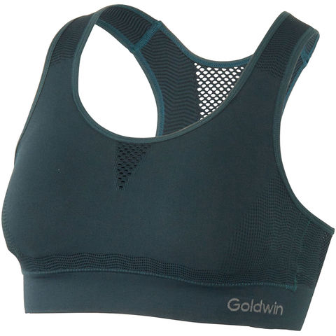 適材適所で編地を変化させて快適性を高めた、編み立て成形タイプのスポーツブラ.縫い目が少なく、擦れや肌当たりが気になりにくいため、ランニングからヨガ、フィットネスまで幅広く使用できます.ストレッチ性が高く、フィット感に優れているのが特徴.サイド部分の幅とフロント部分の丈を広めに設計することで、バスト全体を面で抑えてしっかりホールドすることができ、バストの揺れを軽減.程よいサポート力がありつつ、快適な着用感を損なわないように仕上げました.アンダーゴムは肌当たりが優しく、締め付け感が少ないものを採用しています.体の動きにしなやかにフィットする運動追従性に加え、背面はYバック構造で、肩甲骨の動きを妨げにくい仕様に.