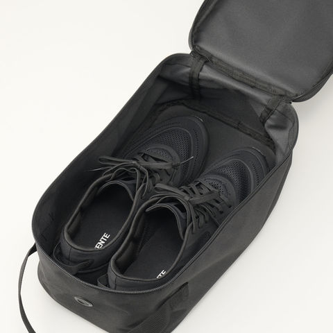 本体にはっ水加工を施した生地を使用したシューズケース.通気性を確保する空気穴付きです.