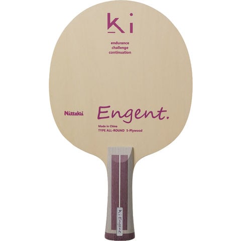 石川佳純さん監修のラケット.老若男女問わず手に取っていただきたいという想いから、カラーリングは落ち着いたパープルに統一.ブレード面には製品名と頭文字の[ KI ]をデザインしました.石川さんが現役時代から大切にしてきた[忍耐 =ENDURANCE ][挑戦 =CHALLENGE ][継続 =CONTINUATION ]から[ EN + GE + NT ]を抜粋し、造語とした商品名です.