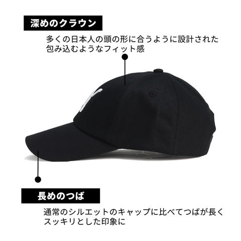 フロントにおおきなプーマキャットを配置したBBキャップ.アジアフィットのシルエットで通常のシルエットのキャップに比べ、つばが長く、クラウンが深くなっており、多くの日本人の頭の形に合うように設計されています.また、大きなキャットロゴが特徴的なデザインで、コーディネートのワンポイントとしてもオススメなアイテムです.