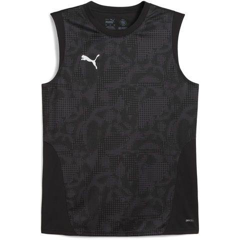 PUMA の最新ノースリーブジャージです.ダイナミックなフロントプリントと胸にあしらわれたシルバーの PUMA キャットが特徴で、スリムフィットのデザインは最高のパフォーマンスを導きます.フィールドでスタイルと機能性を求めるプレーヤーに最適.