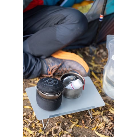 散逸しがちなカトラリーなど小物をスッキリひとまとめに収納できる保温力があり、アルファ米の湯戻し時間の短縮にもチタンマグポット500だけでなく[400Dcup+mulTidish+110gガス缶+小型ガスストーブ]という組み合わせ技も可能.